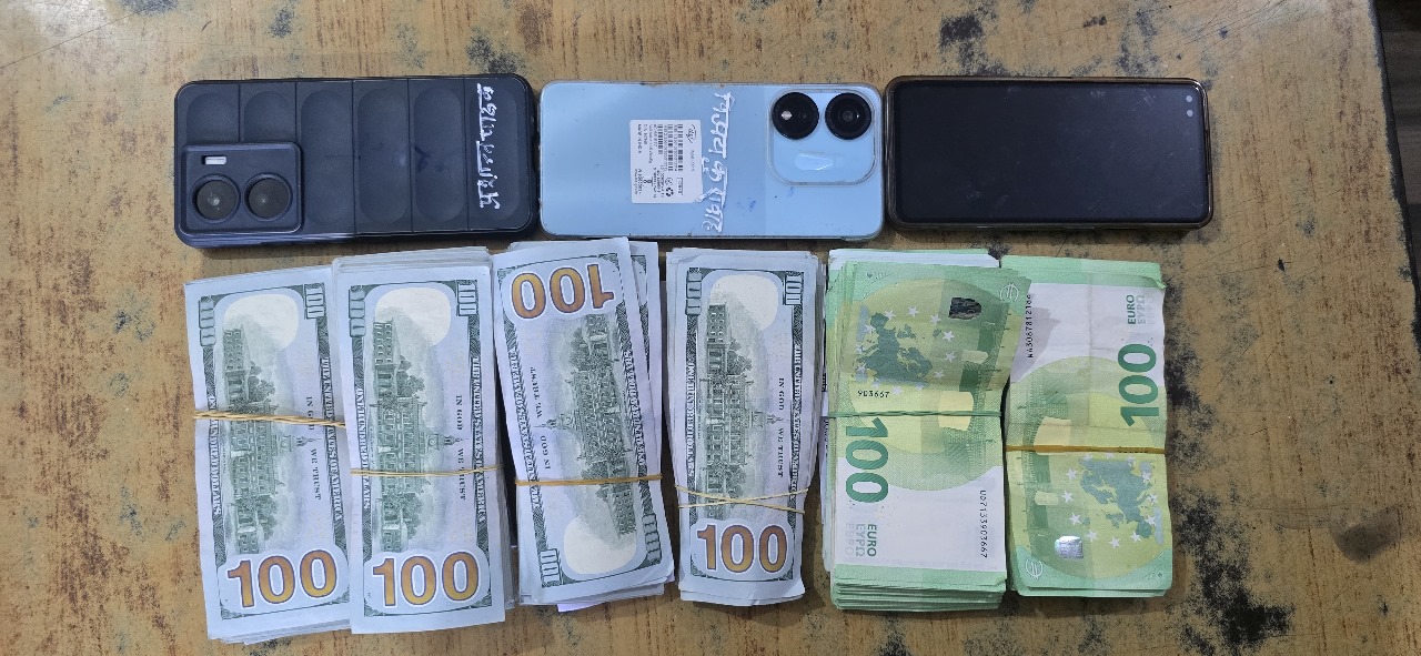 जसमा पक्राउ परेका भारतका उत्तर प्रदेश जिल्ला जालौनका ४० वर्षीय बिजय सिंग कुशवाहको साथबाट अमेरिकन डलर १२ हजार बरामद भएको प्रहरीले जनाएको छ।