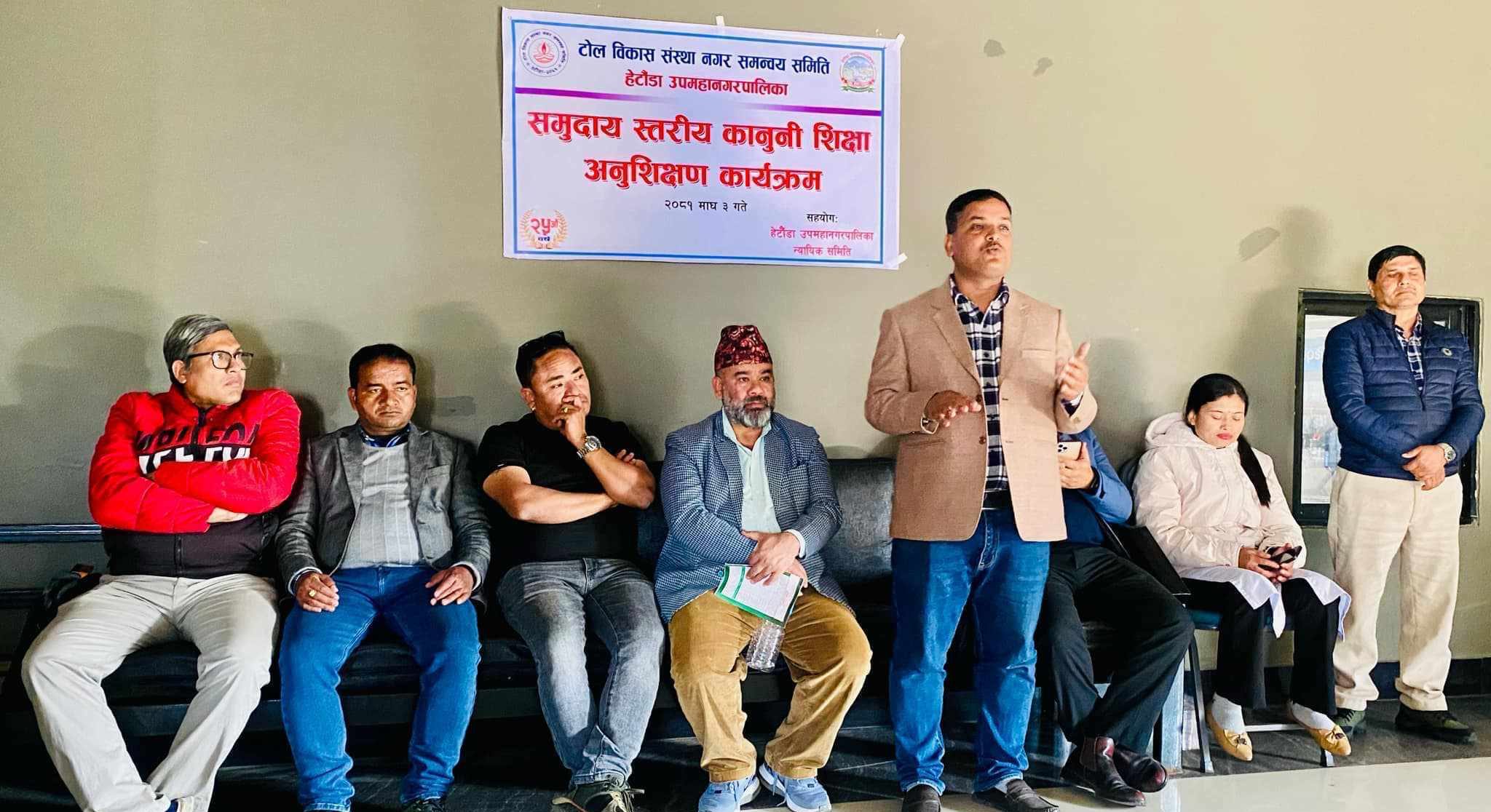 हेटौंडा १२ र १३ नम्बर वडाका ६० जनाको सहभागिता रहेको कार्यक्रमलाई हेटौंडा उपमहानगरपालिकाका कानुनी अधिकृत अधिवक्ता सुजन तिमल्सिना, अप्सरा बस्नेत र अन्जिता थापाले सहजीकरण गरेका थिए । हेटौंडा उपमहानगरपालिकाका उपमेयर एवं न्यायिक समिति संयोजक राजेश बानियाँको प्रमुख आतिथ्यतामा भएको कार्यक्रममा वडा नम्बर १३ का अध्यक्ष पेम्बा लामा, हेटौंडा उपमहानगरपालिका न्यायिक समिति सदस्य एवं नगर समन्वय समिति सल्लाहकार ज्ञानबहादुर थापा, टोल विकास संस्था नगर समन्वय समिति उपाध्यक्ष विष्णु ढुङ्गाना, मेलमिलाप केन्द्र संयोजक एवम् नगर समन्वय समिति सदस्य यदुवंश खतिवडा, नगर समन्वय समिति सदस्य रामबहादुर वाईबा, नगर समन्वय समिति सदस्य एवम् १३ नं वडा समन्वय समिति अध्यक्ष बालकुमार श्रेष्ठ लगायतको उपस्थिति थियो ।