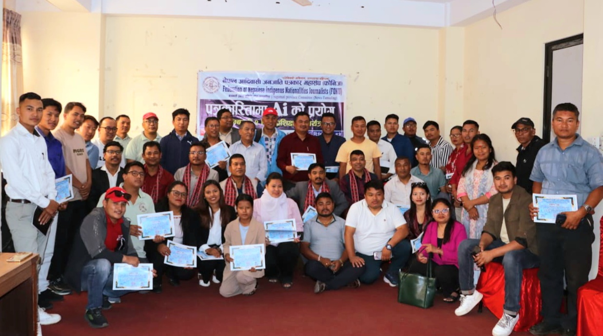 मकवानपुर । नेपाल जनजाति पत्रकार महासंघ (फोनिज) बागमतीको आयोजनामा पत्रकारितामा एआईको प्रयोग सम्बन्धी दुई दिने तालिम सम्पन्न भएको छ । तालिम प्रदेशको भक्तपुर जिल्लाको मध्यपुर नगरपालिका बोडेस्थित नर्ट पाईट मलमा आयोजना गरिएको हो ।